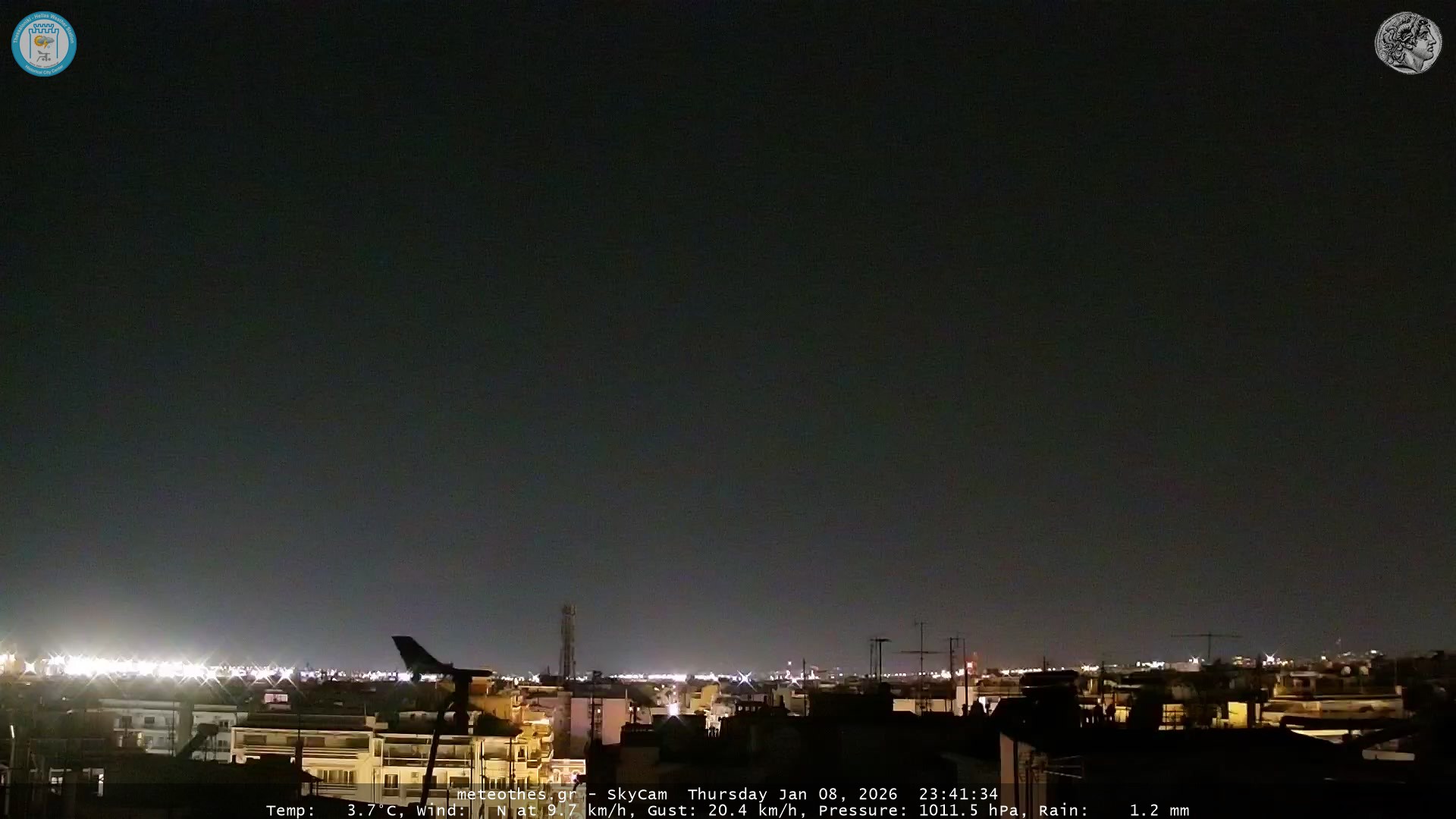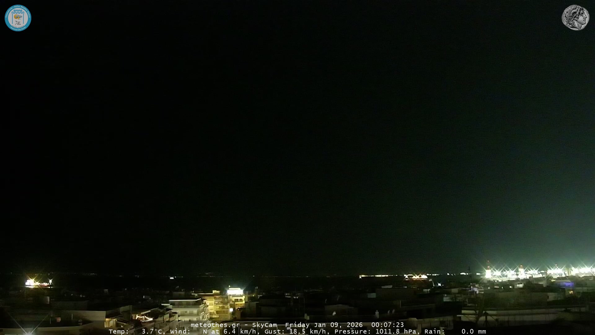 Ζωντανή Ροή Περιστρεφόμενης Κάμερας Ουρανού Ιστορικού Κέντρου Θεσσαλονίκης - Πατήστε |